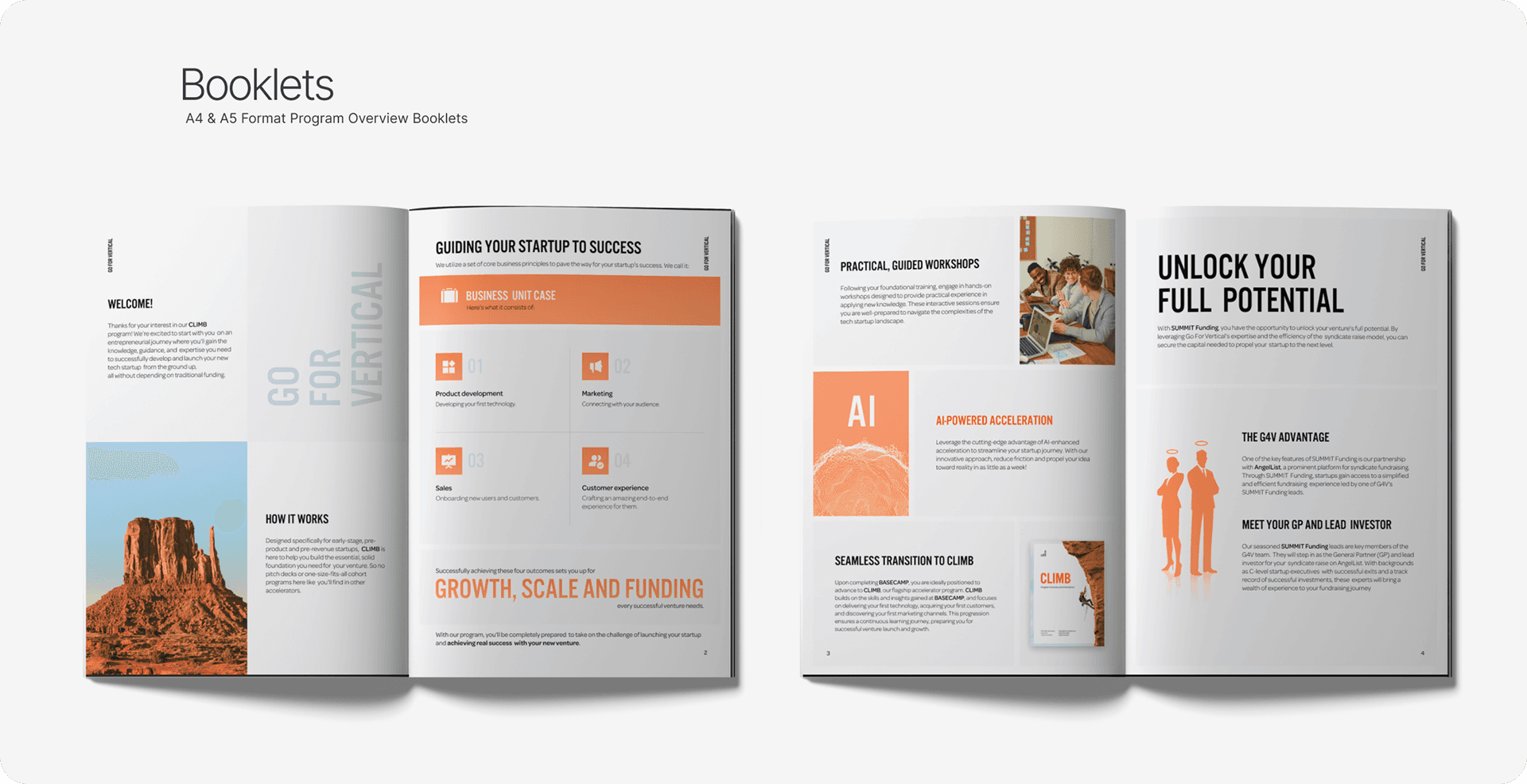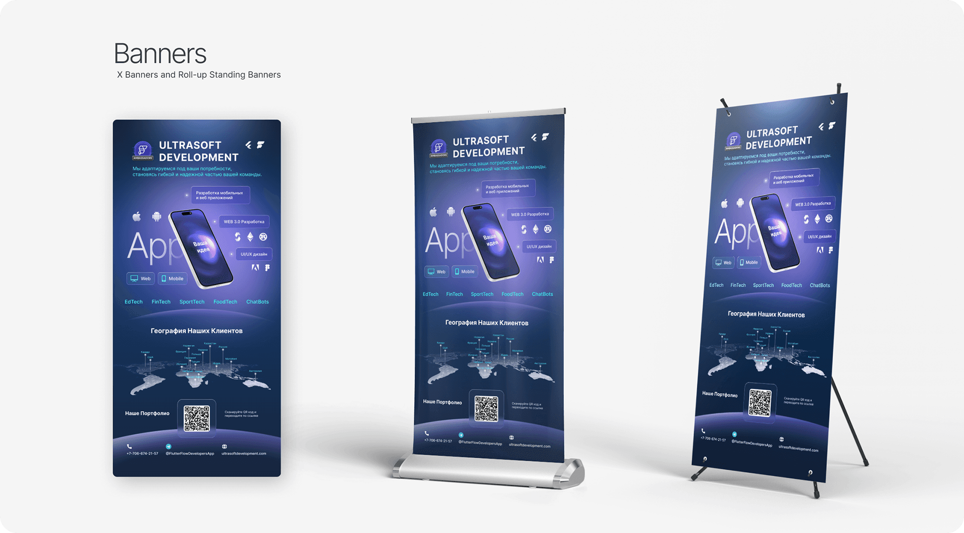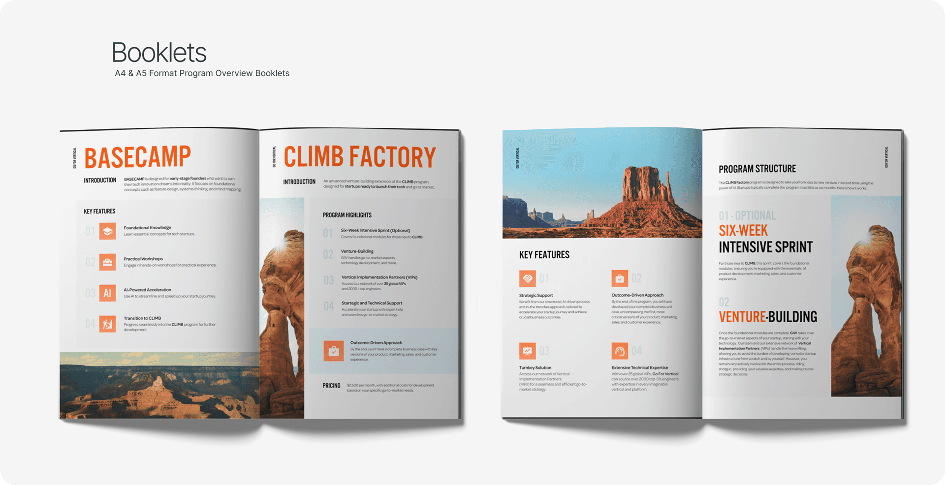 Both print and digital assets used to promote a company and communicate brand identity. Examples include brochures, banners, and social media graphics, designed to create a consistent brand experience.