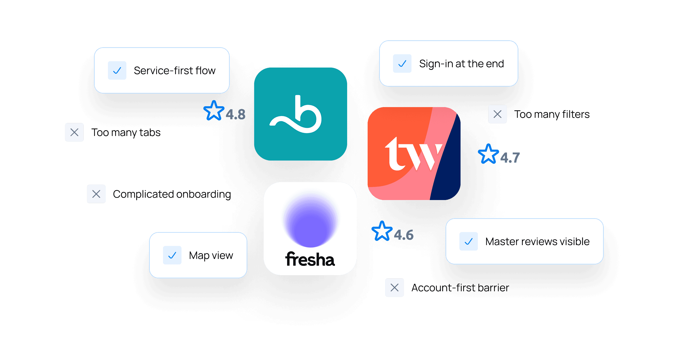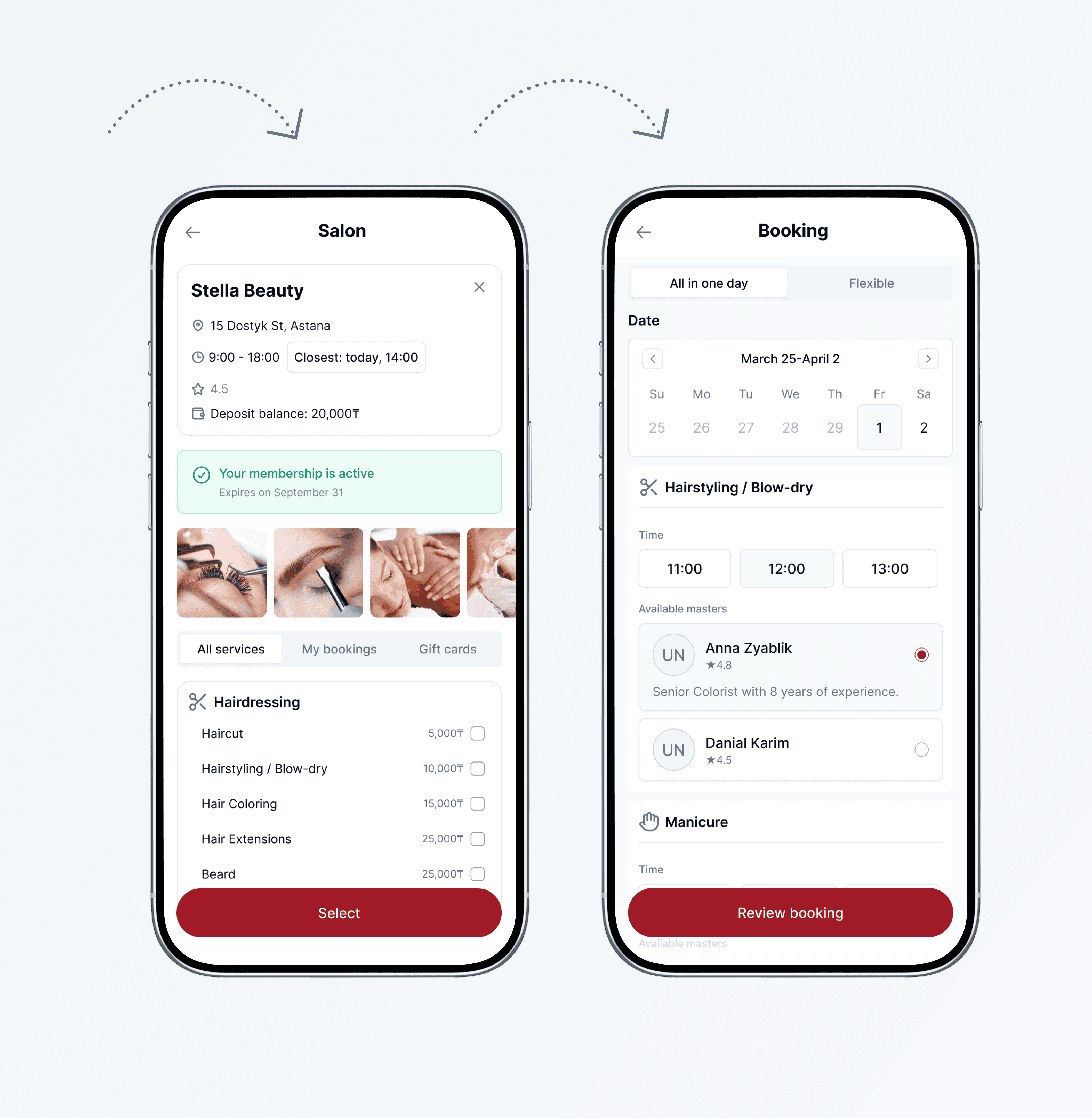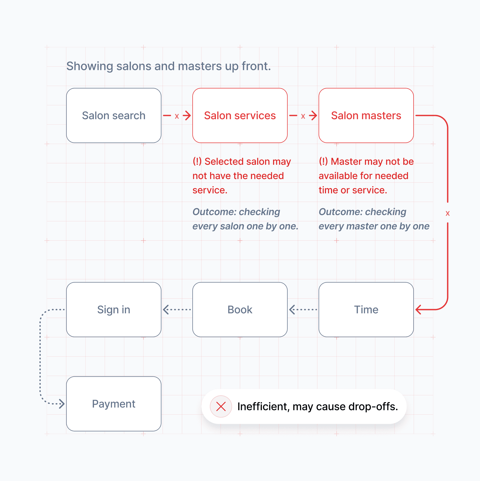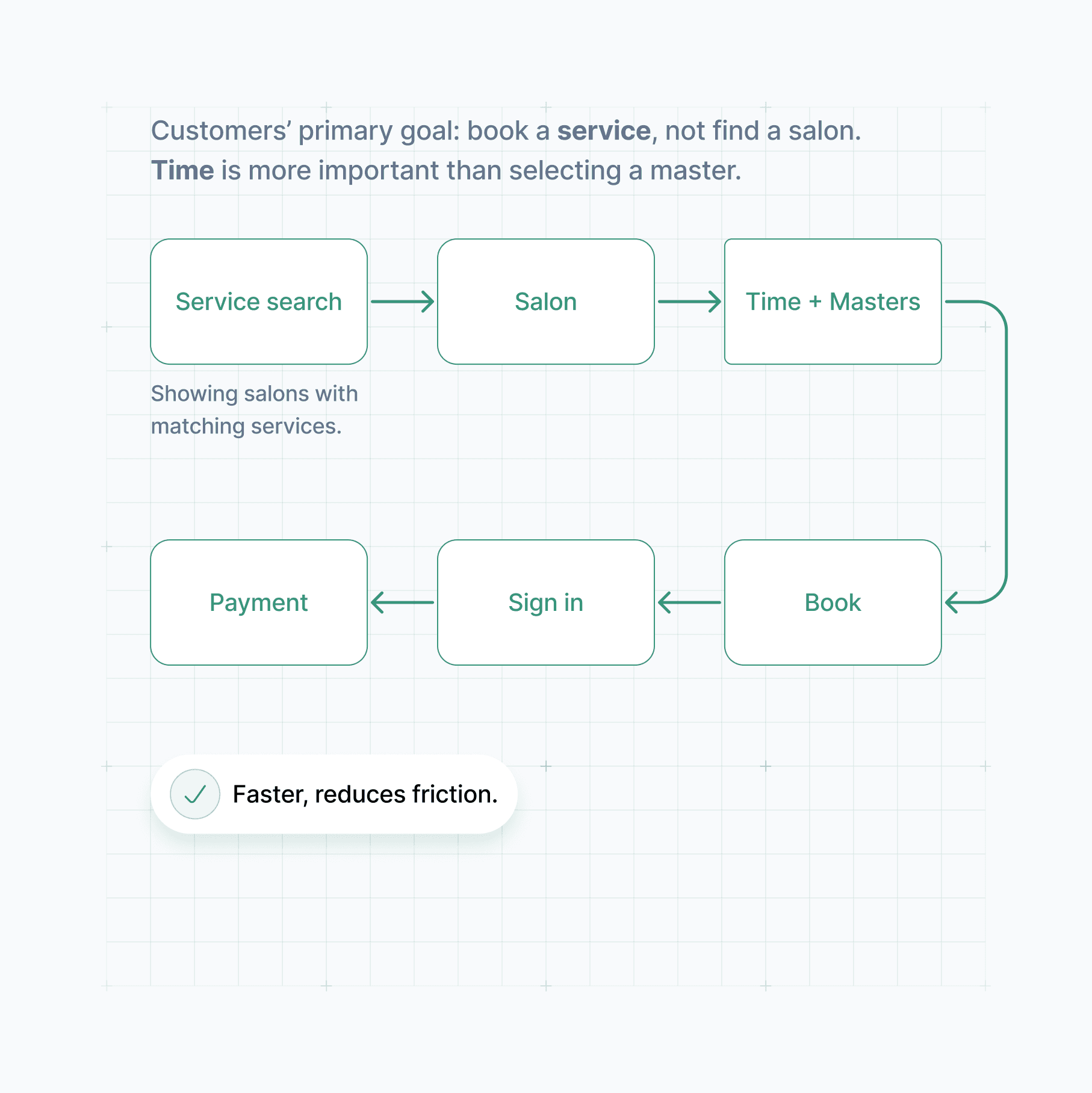 Salon clients need a flexible booking flow adapting to both time- and review-based decisions, as the current process is rigid and limits choice.